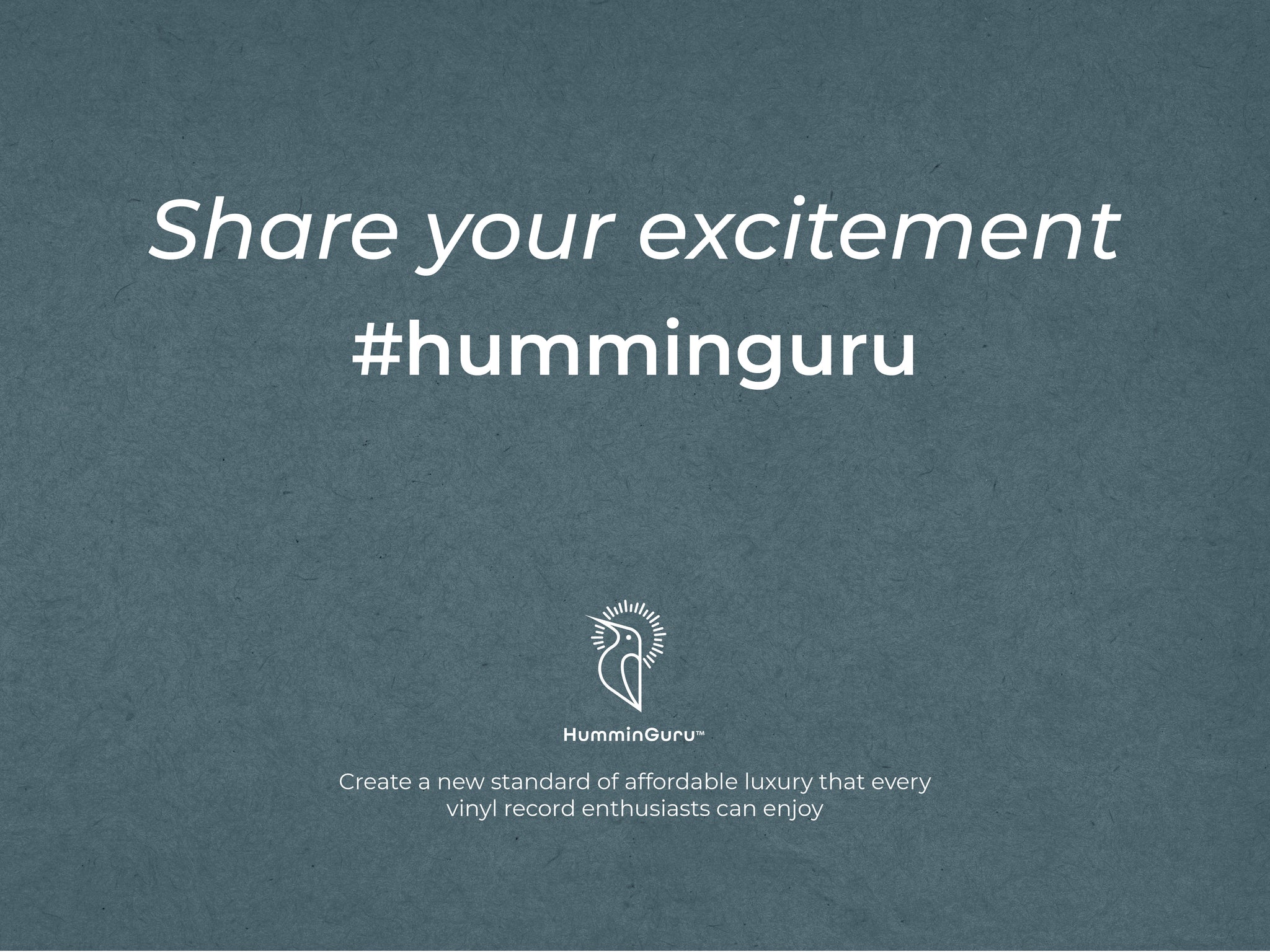 HumminGuruを受け取ったら、あなたのメッセージと素晴らしい写真の共有を楽しみにしています!ハッシュタグ #humminguruを付けて、あなたの興奮と経験を私たちとビニール コミュニティと共有してください。 Instagram 、 Facebook 、 Twitter 、 Pinterest 、 YouTubeチャンネルでフォローしてください HumminGuru の旅に関する今後のニュースやストーリーについては、こちらをご覧ください。私たちのFacebook グループ --- HumminGuru ユーザーとファン クラブの会話に気軽に参加して、より多くの HumminGuru の人々とつながりましょう!